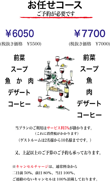 おまかせコースのご利用時は1ドリンクのご注文をいただいています。